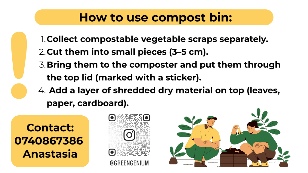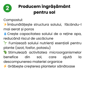 Vă invităm să vă alăturați acestei mișcări ecologice și să contribuiți activ la protejarea mediului în Campusul „Tudor Vladimirescu”. Împreună, putem transforma resturile vegetale în soluții ecologice, construind un viitor mai verde pentru toți. Iar pe măsură ce interesul comunității pentru aceste soluții ecologice crește, fiecare cămin ar putea avea propriul compostor care să creeze solul perfect pentru o grădină cu flori sau chiar cu legume.