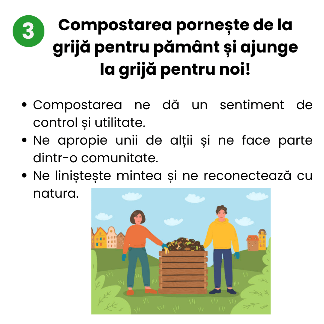 Importanța acestei inițiative nu poate fi subestimată. Fiecare porție de resturi vegetale compostate reduce emisiile de gaze cu efect de seră și minimizează deșeurile care ajung la gropile de gunoi. Compostul rezultat nu doar că îmbunătățește calitatea solului, dar contribuie, pe viitor, și la crearea unei grădini mai sănătoase în campusul nostru. Și să nu uităm de faptul că obiceiurile sănătoase încep, de multe ori, prin exemplele pe care le avem în jur sau prin participarea activă, alături de prieteni, la inițiative care sunt atât benefice pentru planetă, dar și plăcute, prin activități de grup, în aer liber.